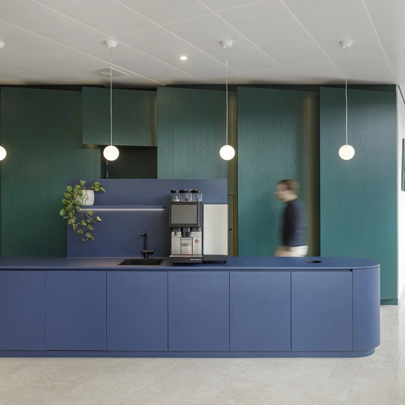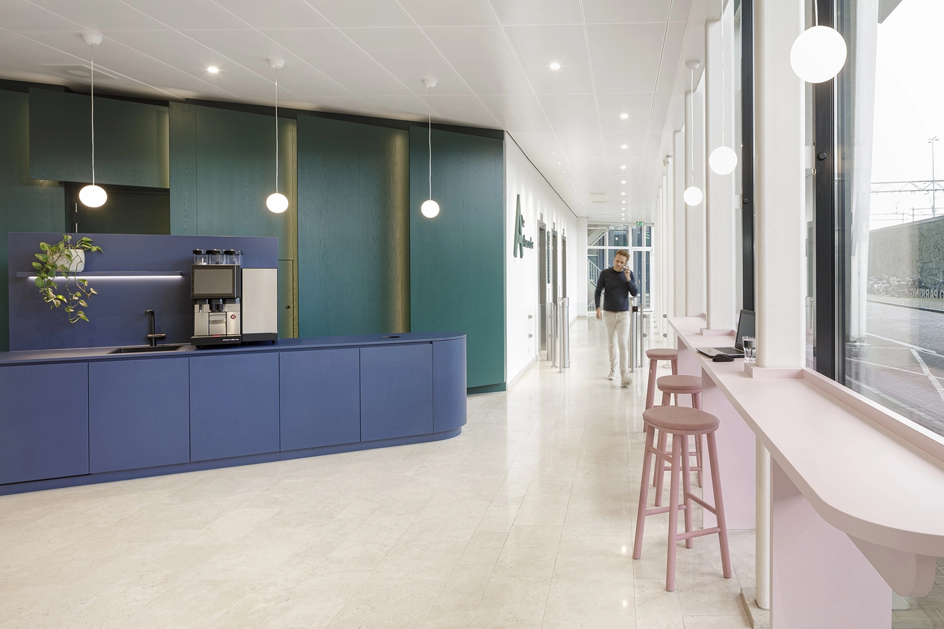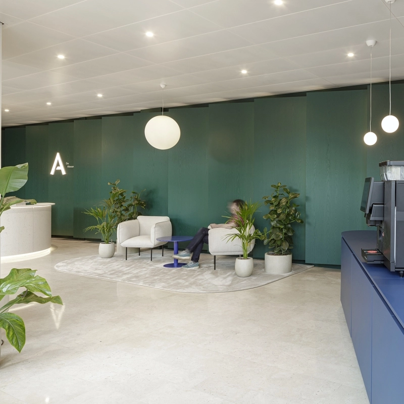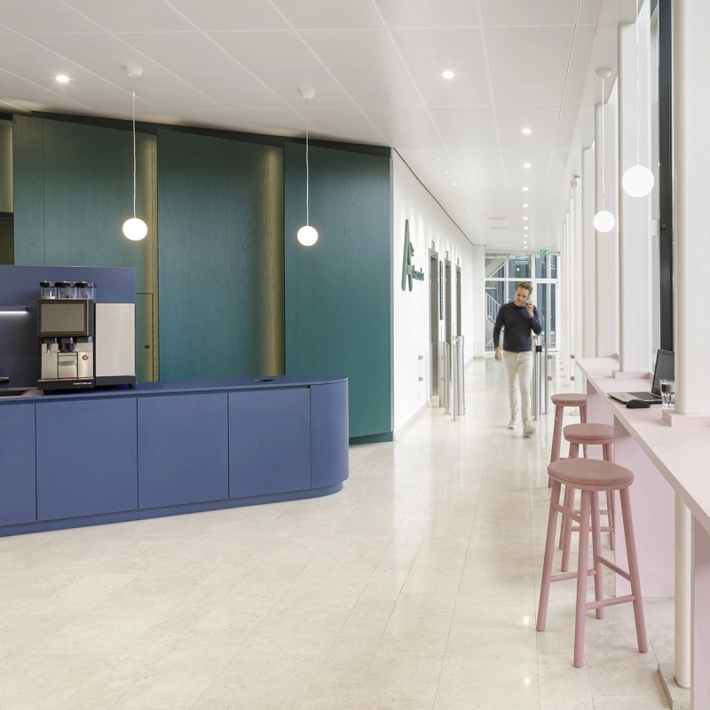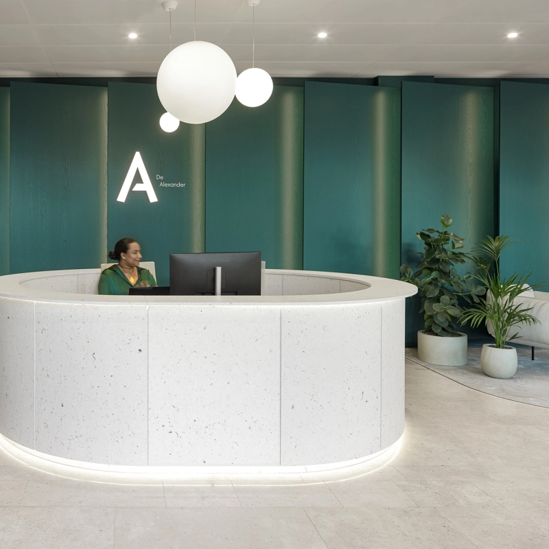 Op het Oosterdokseiland in Amsterdam ligt De Alexander: een modern kantoorgebouw met een representatieve uitstraling en perfecte ligging vlakbij Amsterdam Centraal Station. Kenmerkend aan het gebouw is de afwerking van hoge kwaliteit. Onlangs heeft De Jonge naar ontwerp van Hollandse Nieuwe de entree en receptie volledig gerenoveerd. Met als resultaat een warme en representatieve ontvangstruimte.